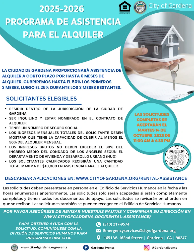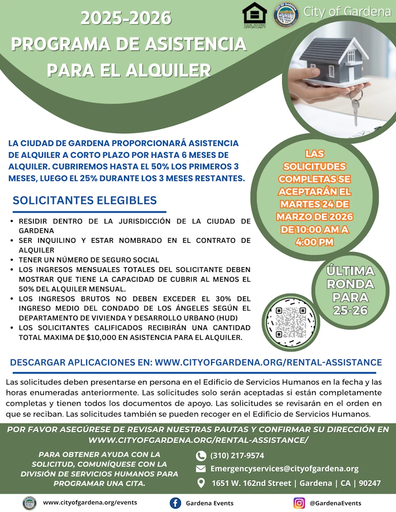 - Contacting the Human Services Division at (310) 217-9574 or email emergencyservices@cityofgardena.org and staff can verify.